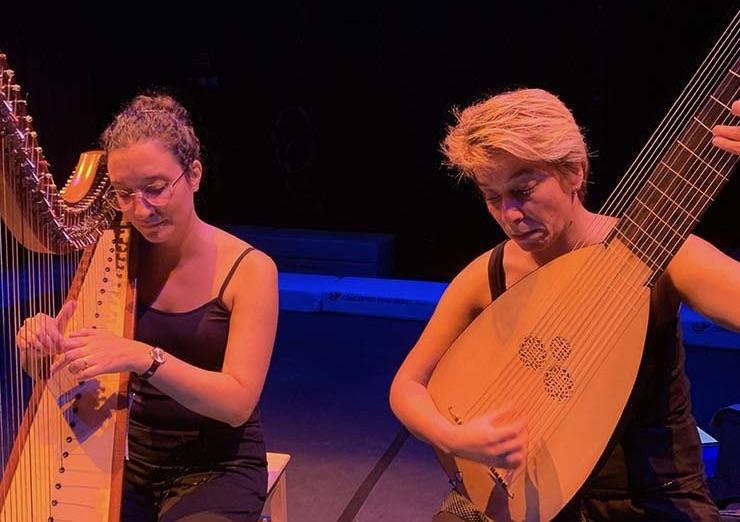 São 4 mãos desejosas de afagar cordas coloridas. Como dois bebés, a Ana e a Helena deliciam-se horas a fio a brincar com a Harpa e a Teorba. Dois instrumentos que se abraçam, e cuja fragilidade obriga a cuidar com a mesma delicadeza com que se embala um bebé. Da harpa todos conhecem a forma e o som, e até a associam aos anjos. Mas da Teorba os pais e as mães têm mais dificuldade em saber da história ou do seu repertório. Mas aos primeiros acordes de imediato se viaja no tempo e deixa de ser importante saber de onde vem. Para os bebés nada disso importa, pois eles sabem distinguir perfeitamente o essencial do acessório. E o essencial são as pessoas que os tocam. Este é seguramente um dos programas preferidos do público recém-nascido. E dos seus avós!