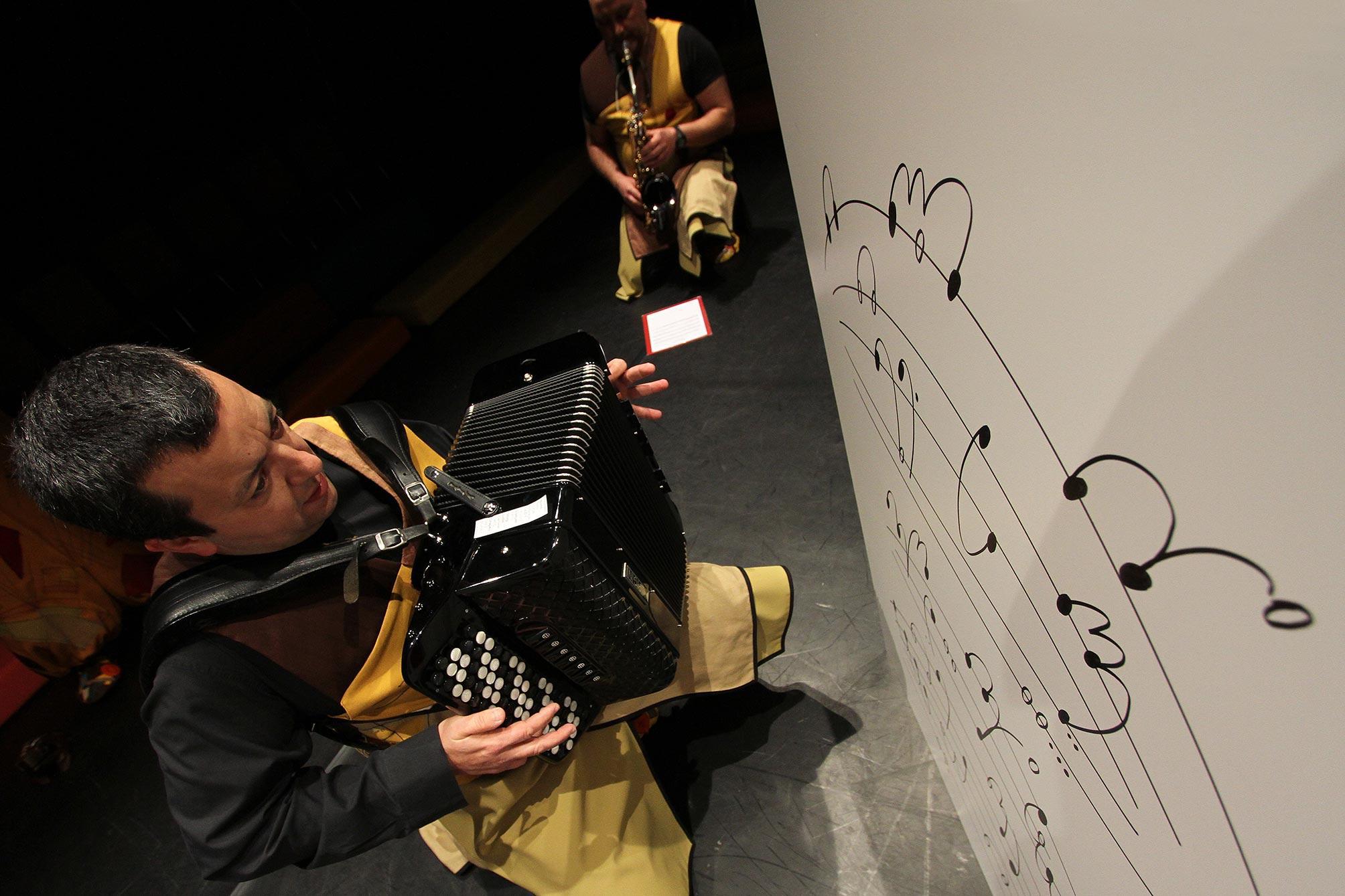 O José encanta os bebés com sorrisos e palhetas de cana que abraça num saxofone, enquanto o Pedro prefere palhetas de metal que sopra no seu acordeão. Faz 26 anos que ambos partilham o palco dos Concertos para Bebés, e já não precisam de partituras. São os bebés que lhes ditam os sons a tocar, e fazem-no com os seus sorrisos, as emoções de surpresa e as aventuras de gatinhar nos seus colos. Decidiram por isso juntar palhetas várias e criar um programa em que oferecem as músicas de que mais gostam, tecidas em contraponto com as propostas sonoras dos bebés. Temos surpresas garantidas.